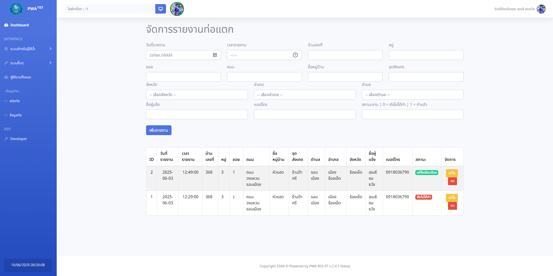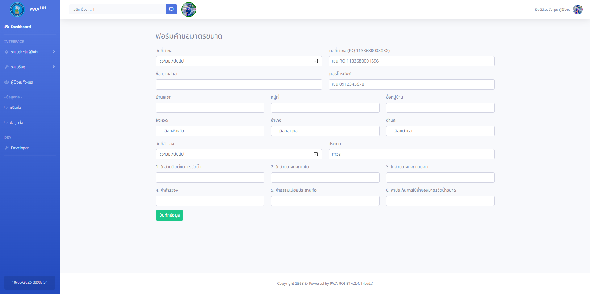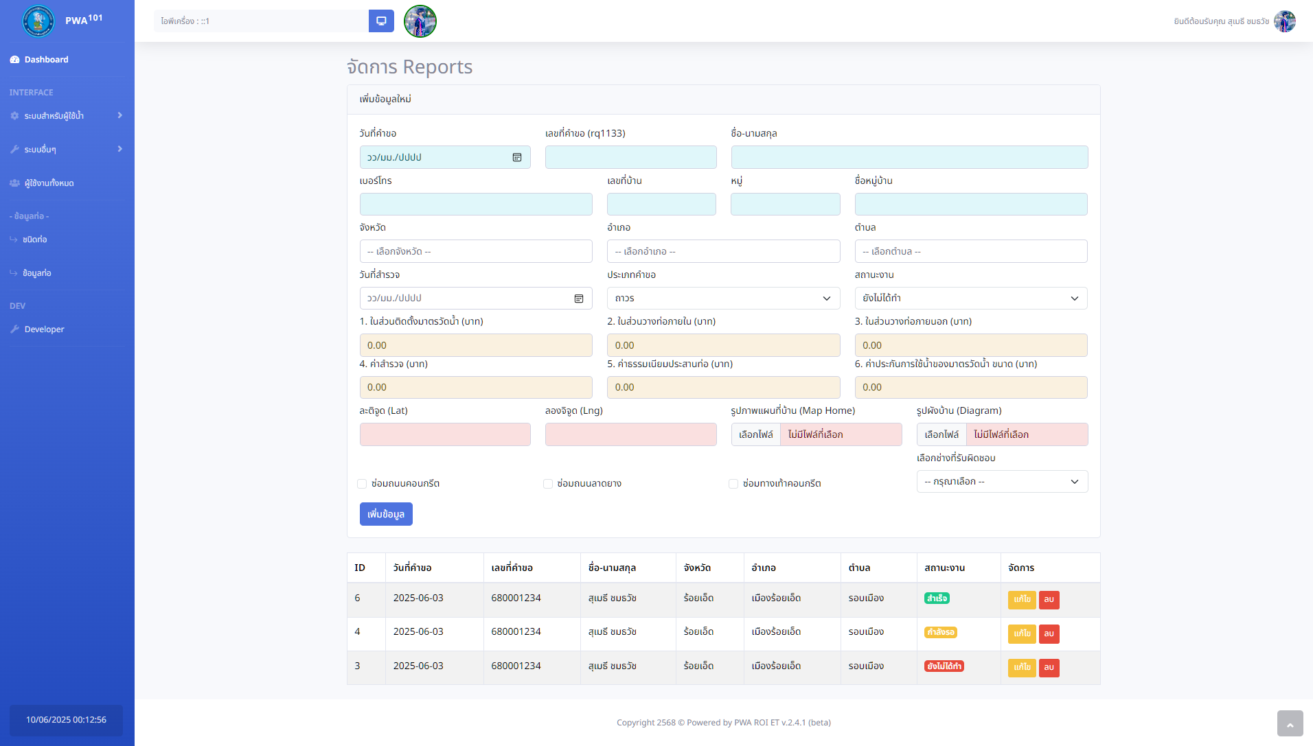 พัฒนาระบบสารสนเทศเพื่ออำนวยความสะดวกแก่เจ้าหน้าที่และผู้ใช้งานภายในสำนักงานประปาส่วนภูมิภาค สาขาร้อยเอ็ด ในการบริหารจัดการข้อมูลการออกเอกสารต่างๆ อย่างมีประสิทธิภาพและรวดเร็ว