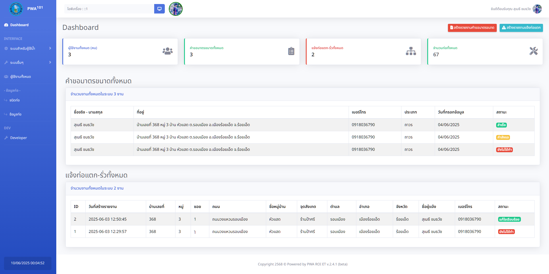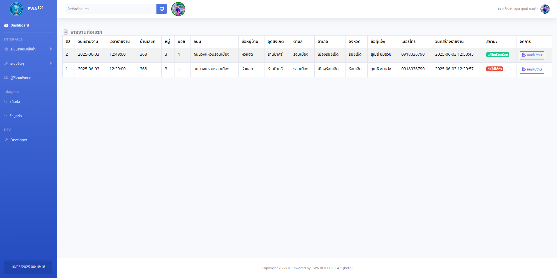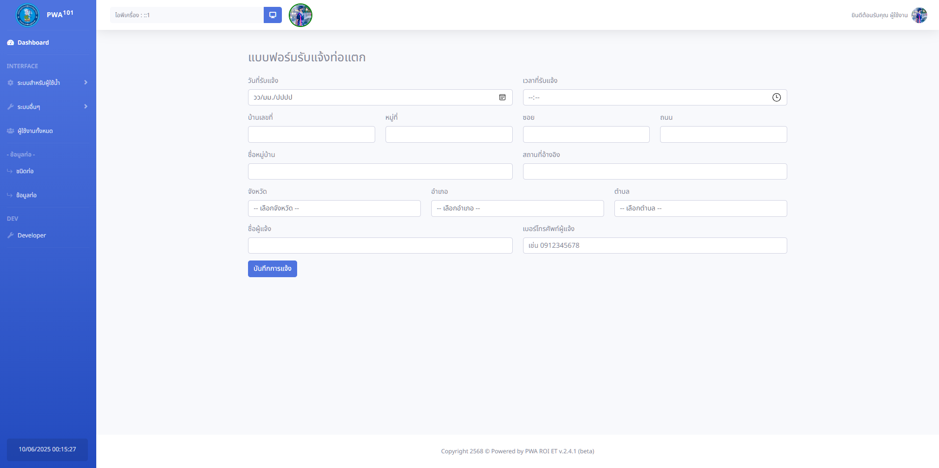 พัฒนาระบบสารสนเทศเพื่ออำนวยความสะดวกแก่เจ้าหน้าที่และผู้ใช้งานภายในสำนักงานประปาส่วนภูมิภาค สาขาร้อยเอ็ด ในการบริหารจัดการข้อมูลการออกเอกสารต่างๆ อย่างมีประสิทธิภาพและรวดเร็ว